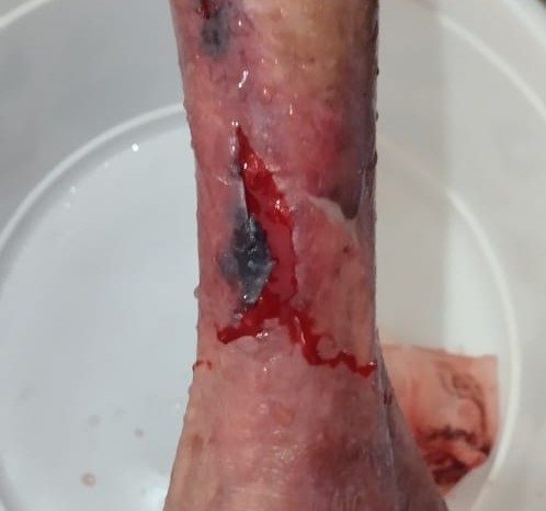 – Lesão cutânea tipo 3: Perda total do retalho, expondo todo o leito da ferida.